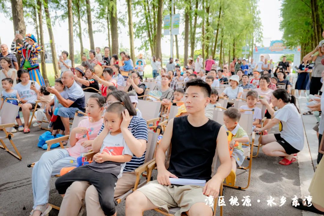 隨后,現場的水車伴著歡笑聲噴灑出陣陣水霧,也標志著此次“東灣夏日清涼大作戰”活動正式開始。在接下來的兩天時間里,活動將充分結合東灣村民俗文化和稻田、河涌等良好的生態環境基底,通過農艇競渡、趣味戲水、非遺剪影、東灣美食、清涼集市等元素,將傳統鄉村元素與現代競技、活動相融合,打造一系列清涼刺激的互動體驗?;顒有问截S富多樣,既有團隊合作的競技項目,也有輕松愉快的趣味游戲,還有特色清涼集市供游客休閑購物,可謂是“面面俱到”。