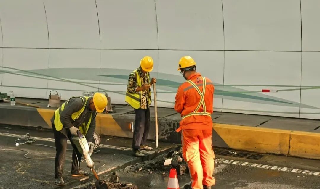 針對(duì)長隆隧道存在的路面滲水問題,技術(shù)團(tuán)隊(duì)經(jīng)綜合分析,采用針對(duì)性優(yōu)化的埋管排水工藝,對(duì)滲漏點(diǎn)進(jìn)行精準(zhǔn)修復(fù),累計(jì)完成38處病害治理,有效解決安全隱患。同時(shí),組織力量著手處理橫琴隧道的路面坑塘問題,通過平整路面、優(yōu)化標(biāo)線,顯著提升車輛通行的平穩(wěn)性與安全性,為賽事期間的交通疏導(dǎo)提供有力支撐。